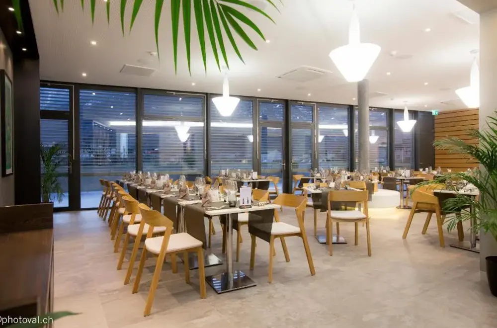 Mooi design, schoon, ruim, mooi ingericht, rustig. De service deed heel zijn best en was beleefd. Het eten was prima! De amuse in het begin was ook leuk.